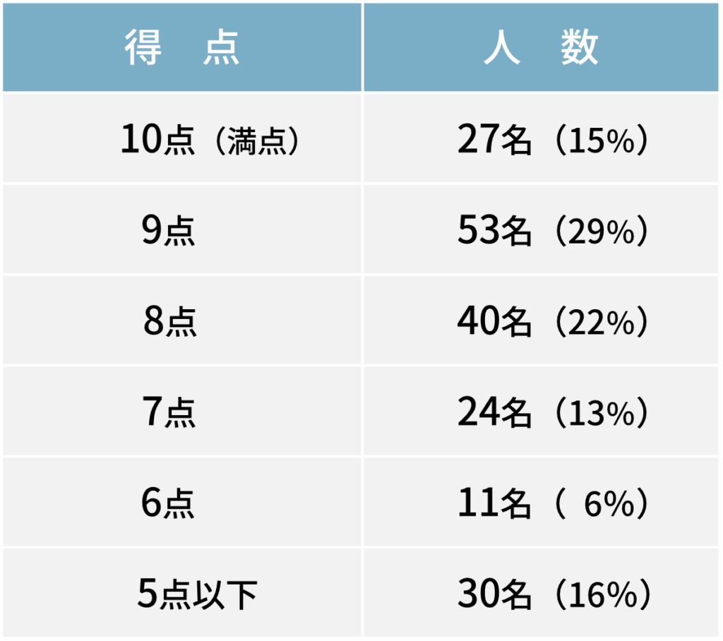 ※成績優秀賞につきましては、10点(満点)獲得の27名を対象に抽選を行っております。